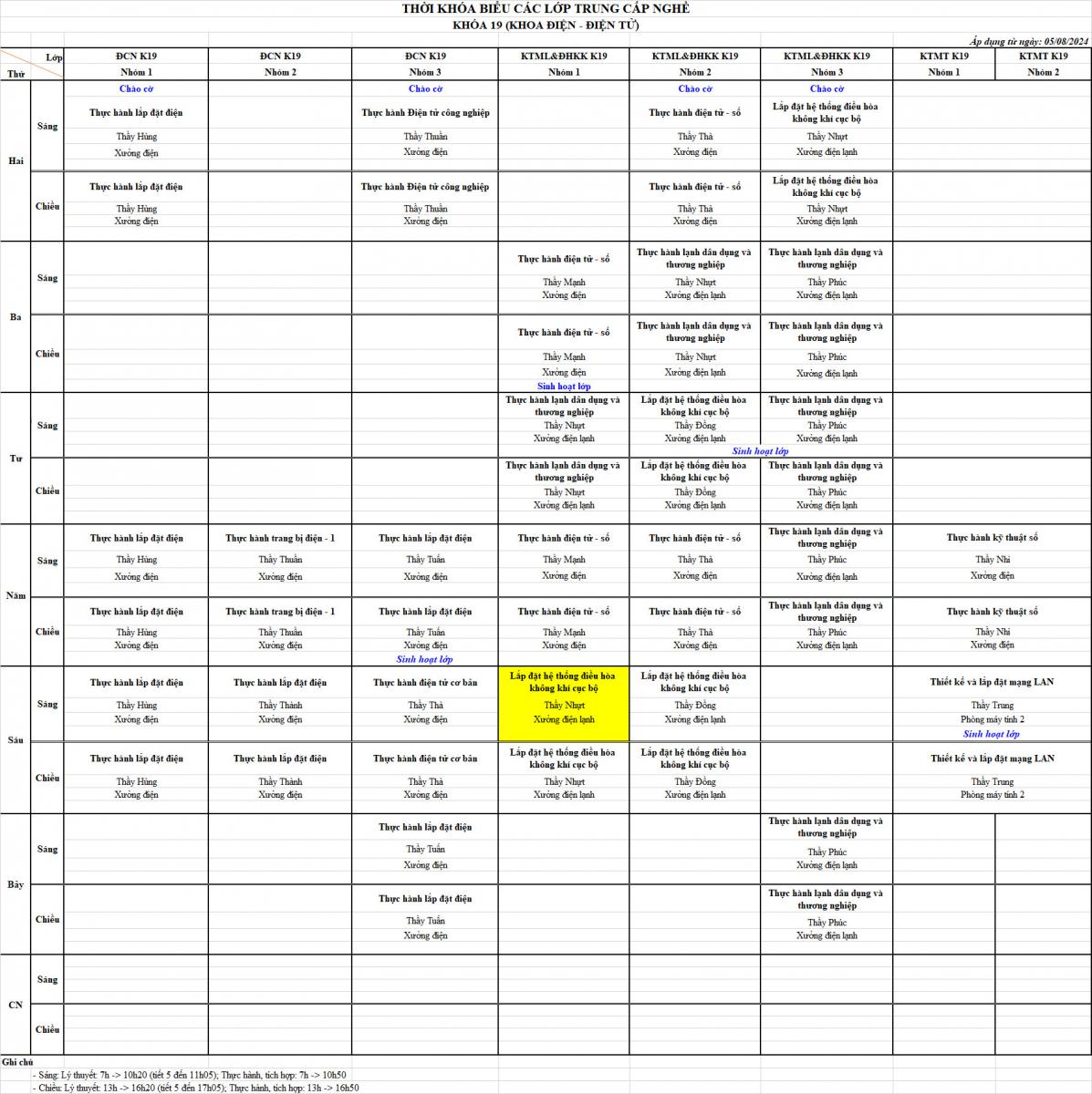 Thời khóa biểu Từ 05/08/2024 đến 10/08/2024