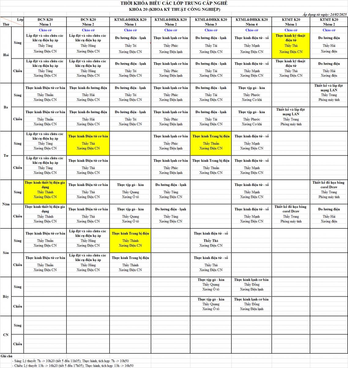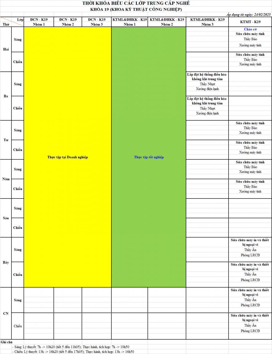 Thời khoá biểu Từ ngày 24/02/2025 đến ngày 02/03/2025