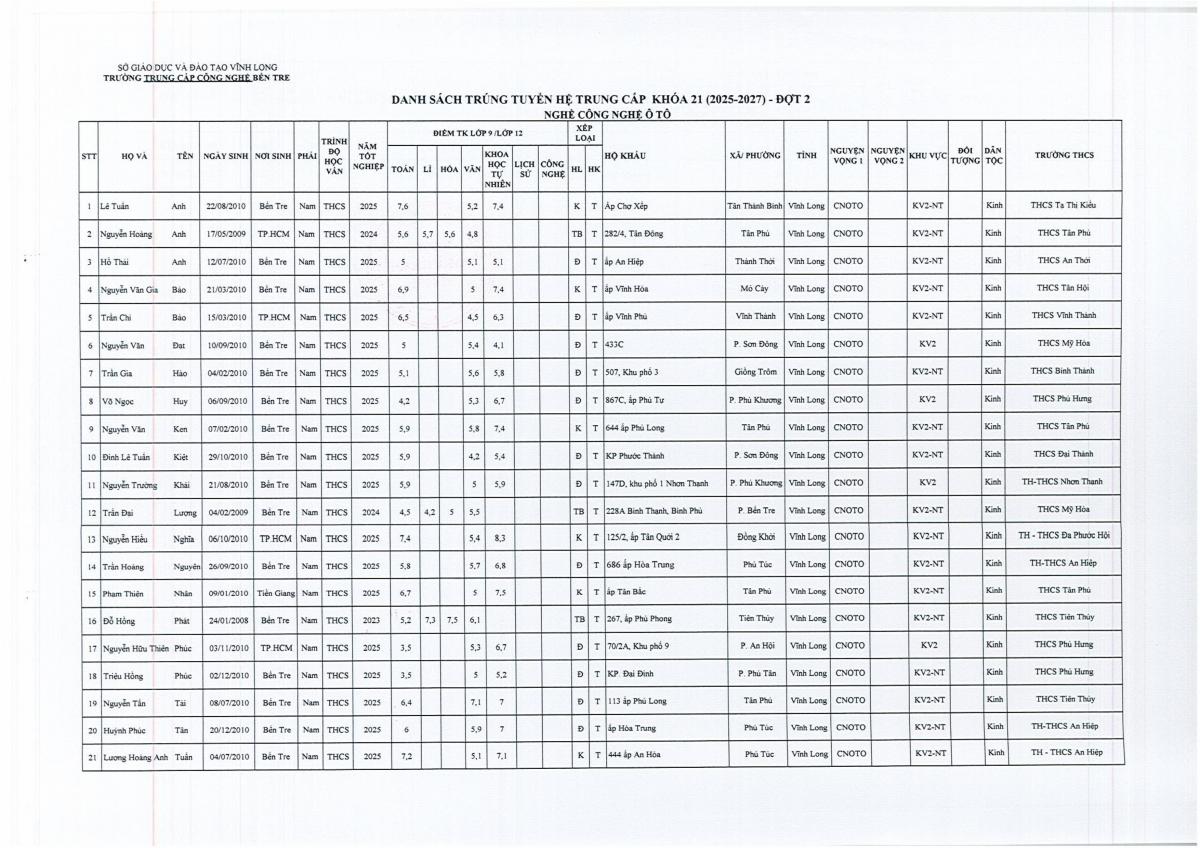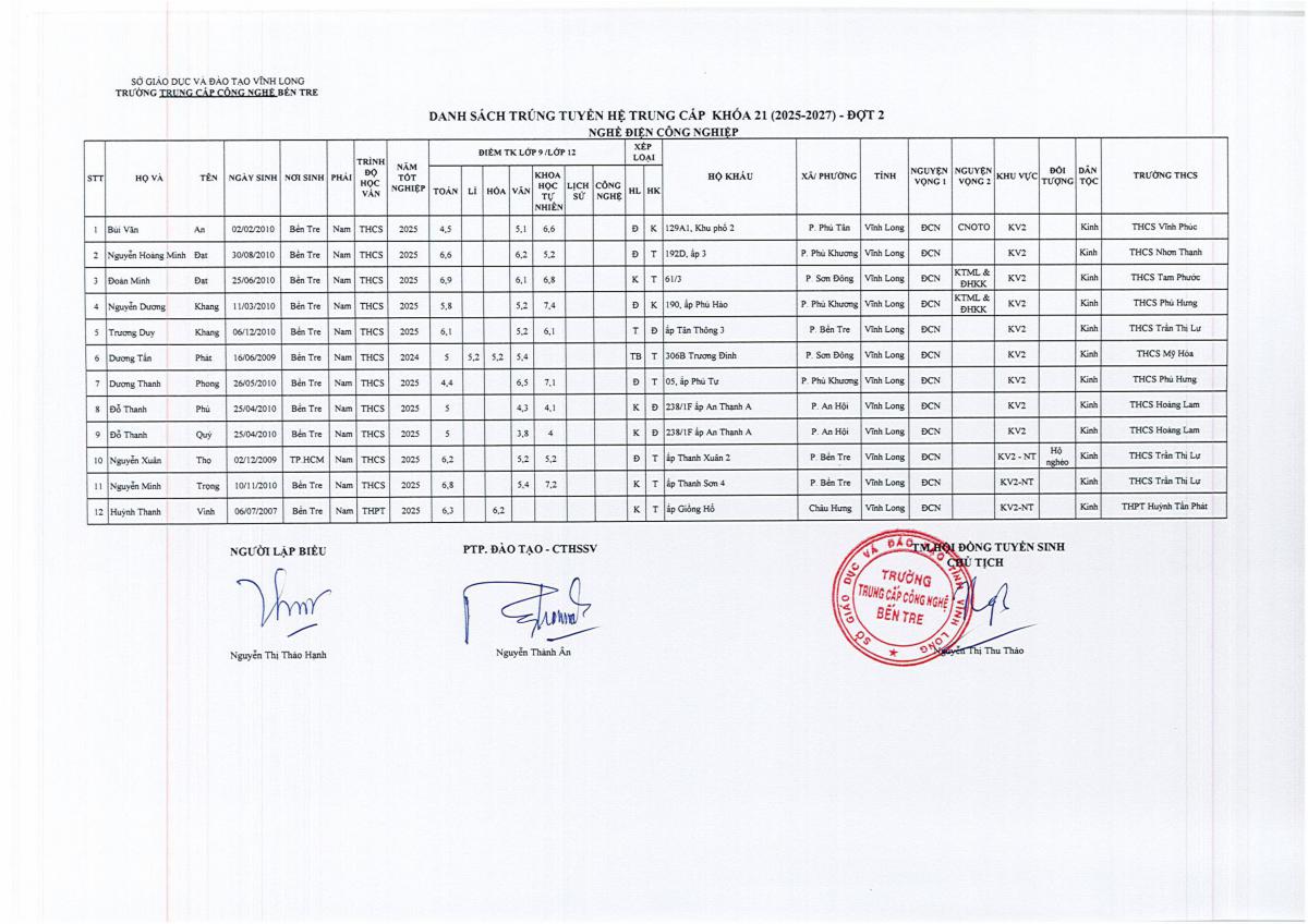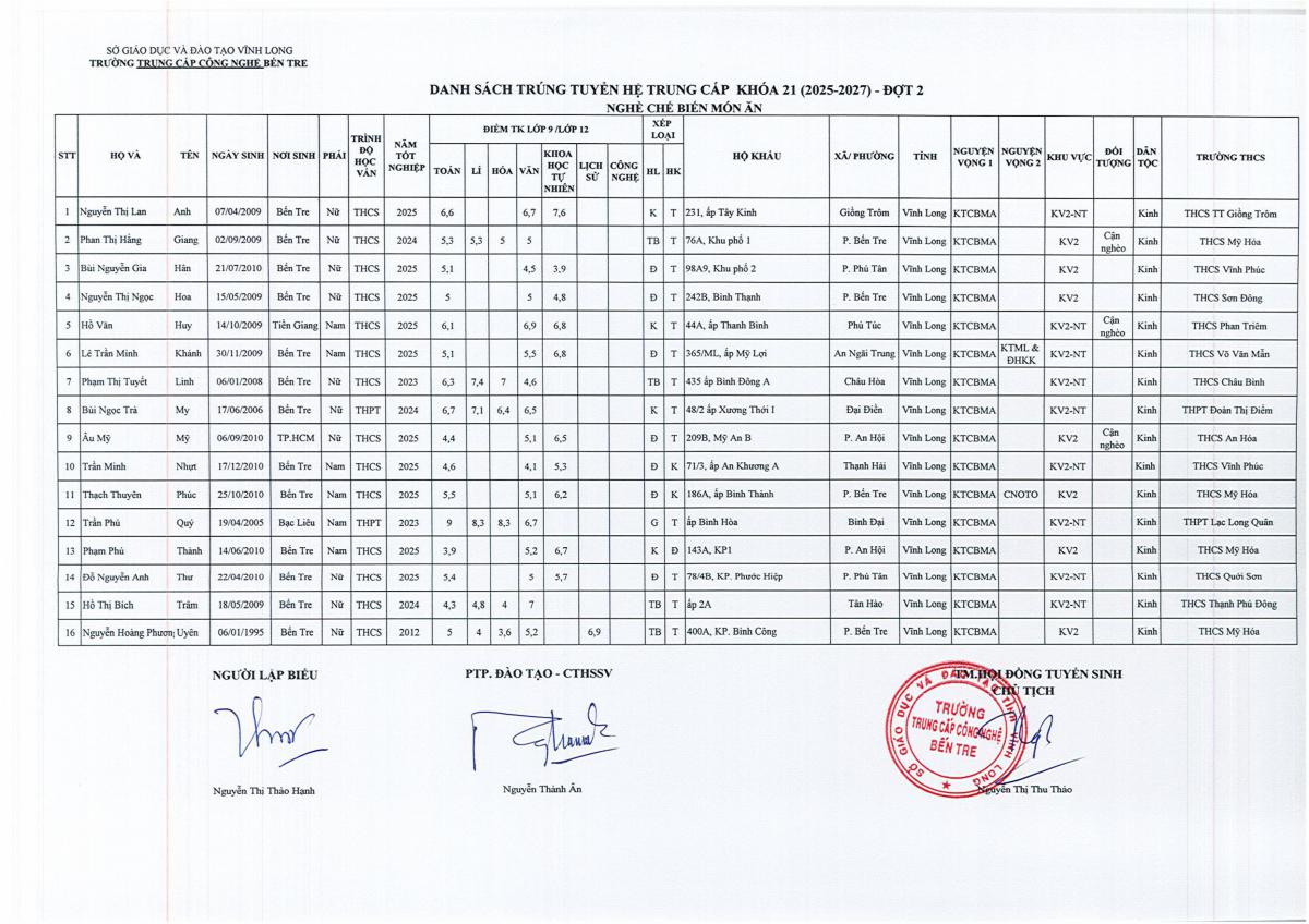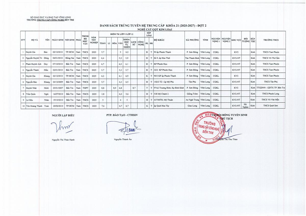 Thông báo trúng tuyển đợt 2 niên khóa 2025-2027