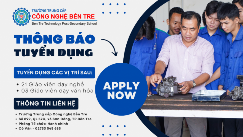Trường Trung cấp Công nghệ Bến Tre Cần tuyển dụng Giáo viên